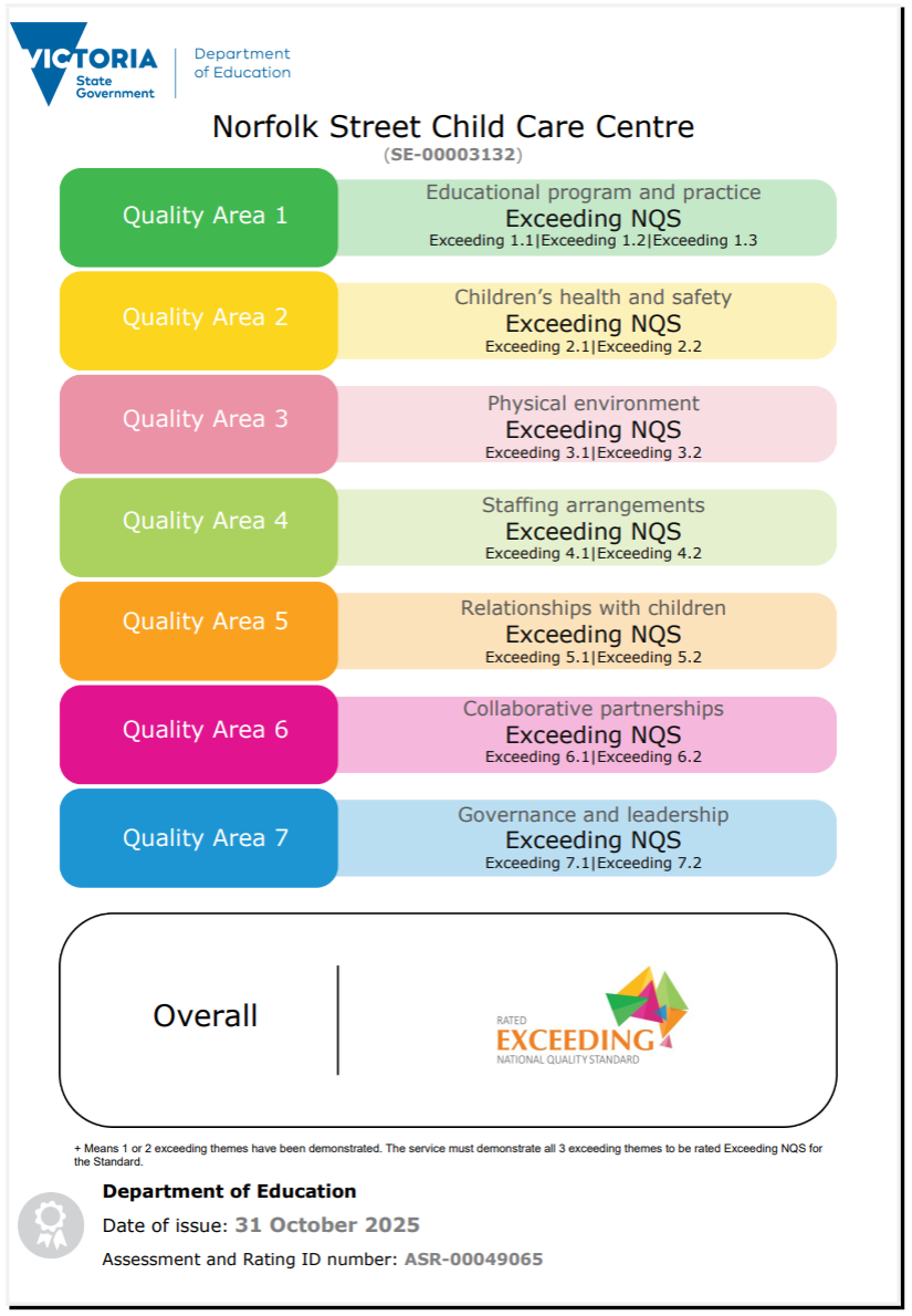 Norfolk Street Child Care Centre (NSCCC) is a not for profit 66 place centre, offering care to the local community since 1976.